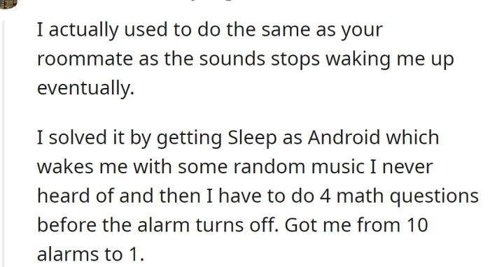 Eventually, the OP Managed to Train Their Roommate to Sleep Through All the Alarms: