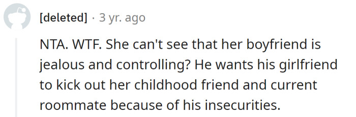 Redditor Let Childhood Friend Move In; Now She Requires Him to Move Out of His Own Apartment Because Her New Boyfriend Is Jealous