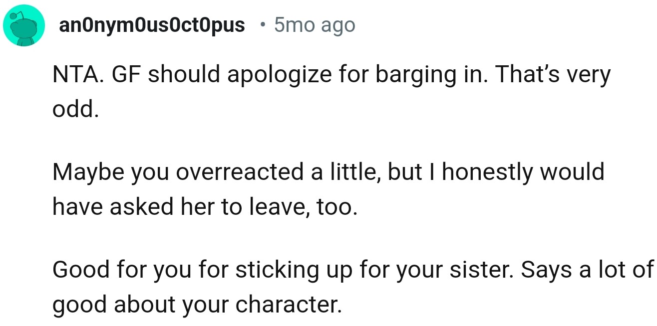 Well, Redditors swooped in with a clear NTA verdict. Defending his sister, they agreed, was the right move.