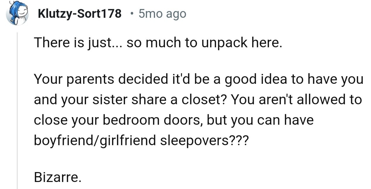 Thankfully, his sister was only studying. However, both she and OP were stunned by such a brazen display of disrespect. The girlfriend began digging through the closet, paying no mind to the brewing tension.
