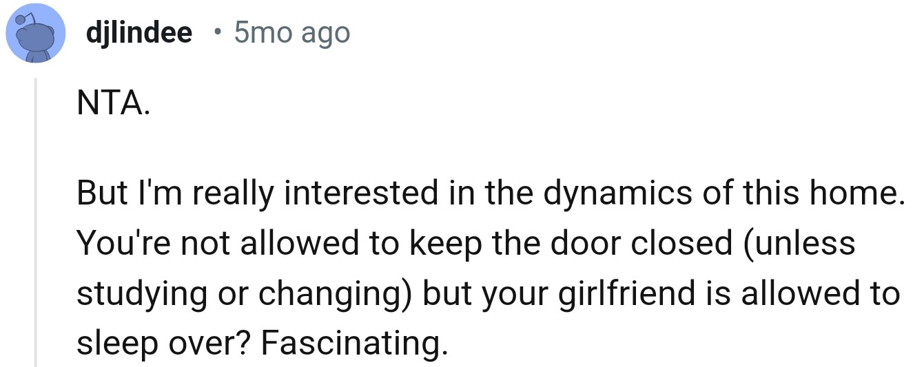 In their house, closed doors meant someone was either changing or needed quiet for studying. OP tapped the door lightly, but before his sister could respond, his girlfriend barged in. Cue the awkward silence.
