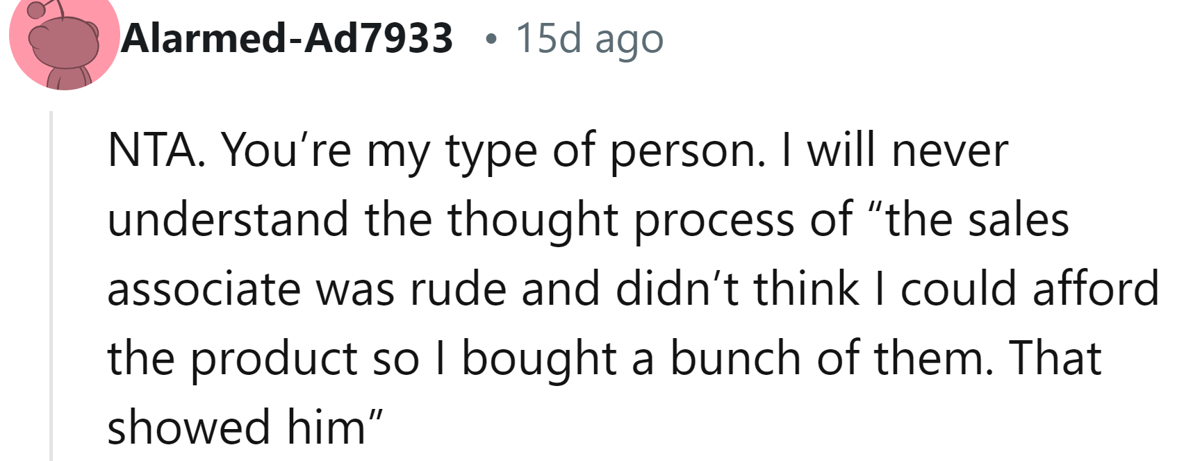 The Redditor was adamant that she didn't want the sales assistant to benefit from the sale after how rude she had been.