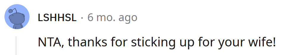 If someone offended your significant other, you would jump in to defend them, right? Well, that's precisely what Reddit user u/Misanthropic_Lemon did for his wife, but now he's wondering if he might be the a**hole.