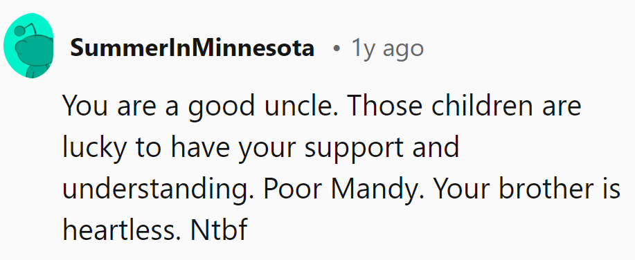 OP is close to his brother's children Tyler, Mandy, and Brian. His brother distanced himself from Mandy, 8, after discovering she wasn't his biological daughter.