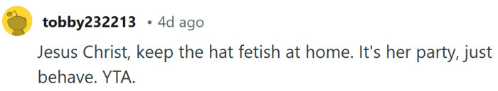 In the end, the OP reluctantly conceded and didn’t wear the hat, though he remained frustrated. The party went well, and the tension faded with the holiday season—until history began repeating itself.