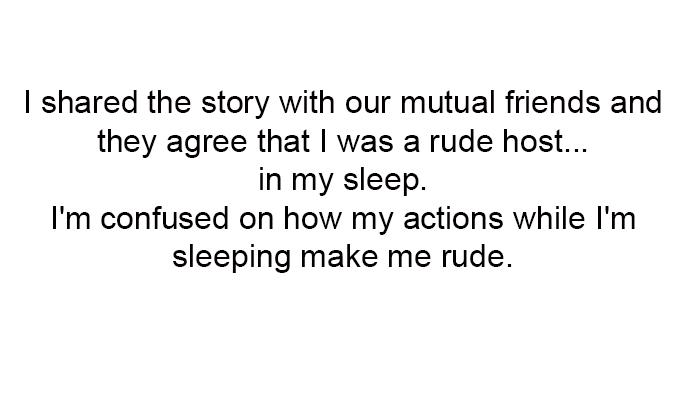 When he shared the story with their mutual friends, they sided with the friend, labeling him a rude host even though the incident occurred while he was asleep. This left him questioning how actions performed unconsciously can impact perceptions of rudeness and responsibility.