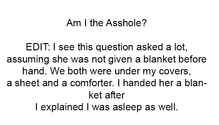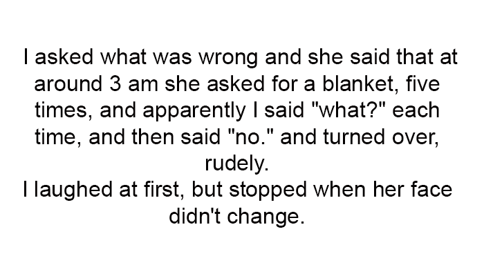While the host enjoyed the night, the next morning was met with unexpected tension. The friend was visibly angry and revealed that around 3 AM, she had asked for a blanket multiple times, and he had responded with 'What?' followed by a definitive 'No' each time before turning over.