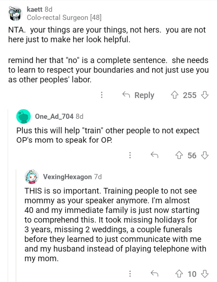 OP shared how her mom likes to volunteer her and her things without her consent.