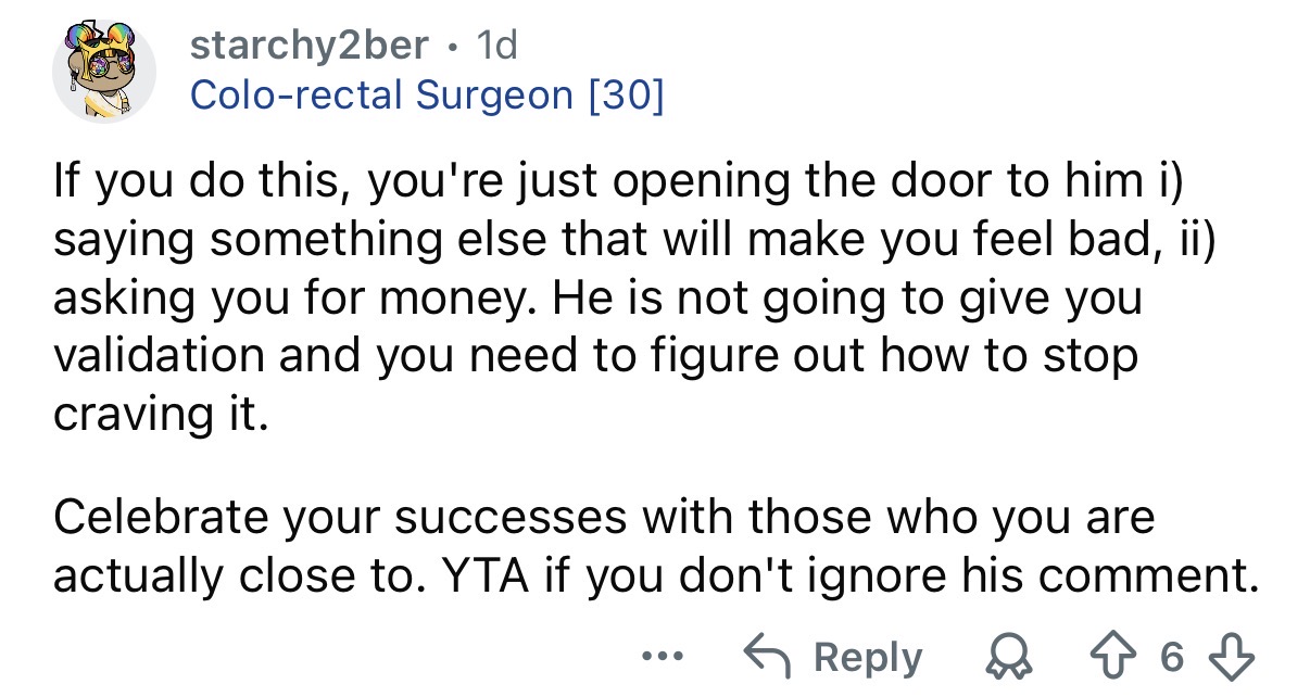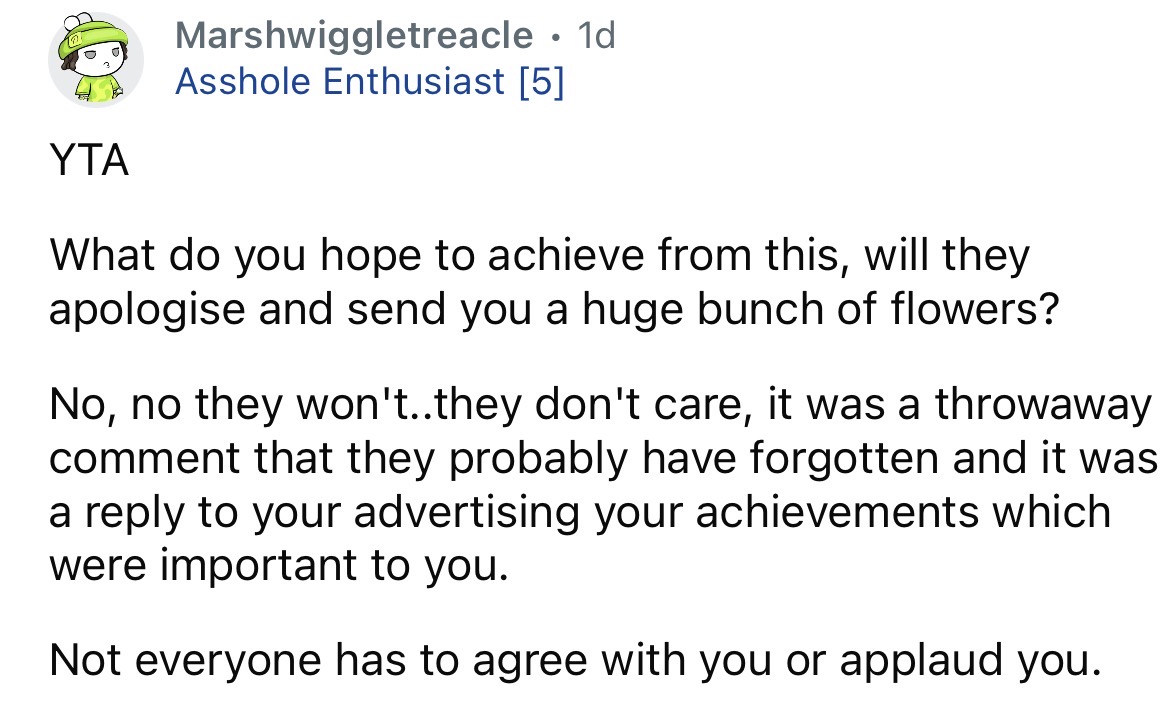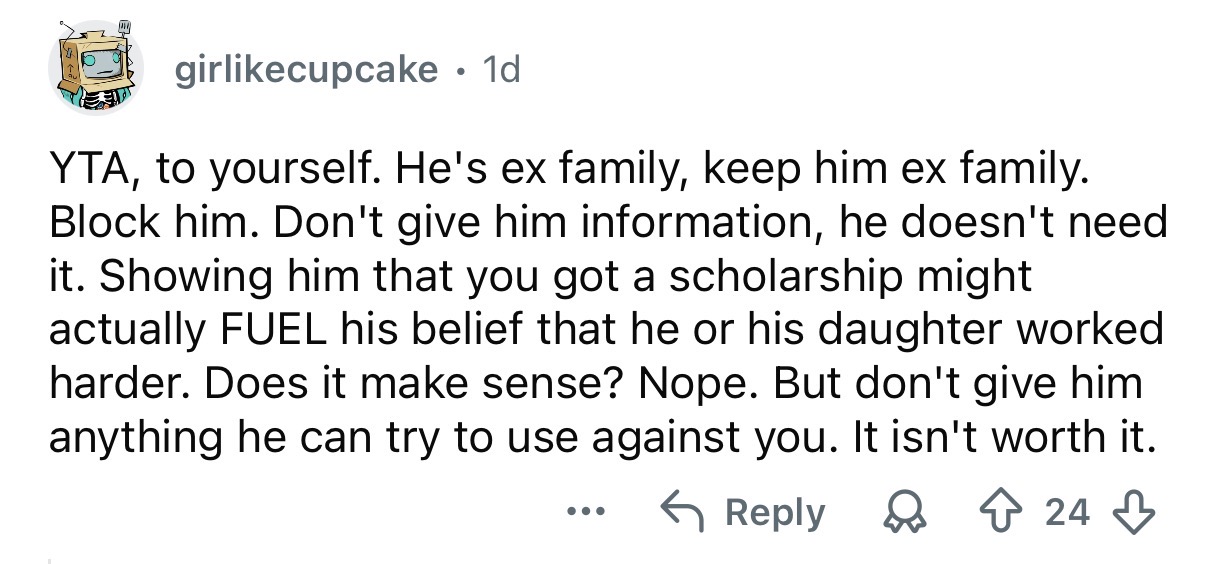 He told her no one cared that she worked through school and that his daughter had done the same. The message was dripping with condescension, as if the OP's story didn’t matter.
