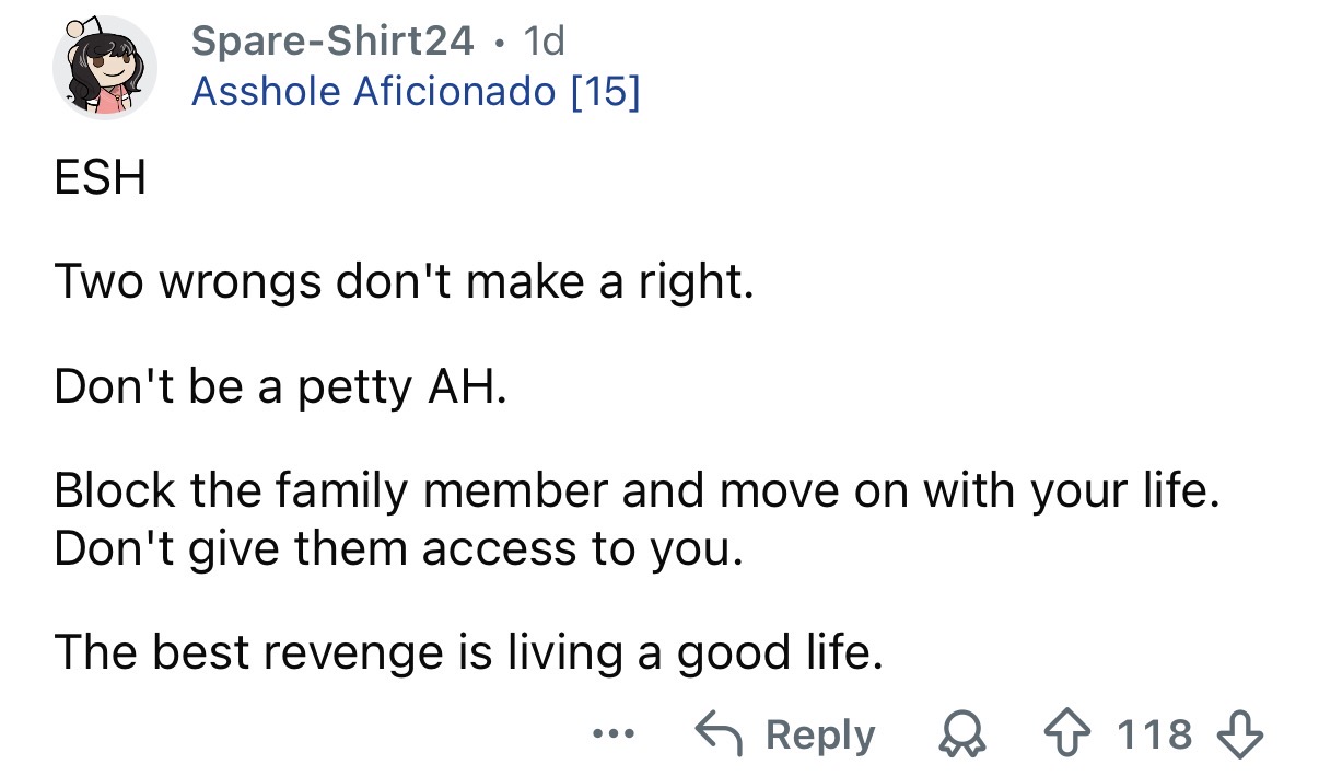Reddit u/Ok-Enthusiasm-9976"Two wrongs don't make a right."