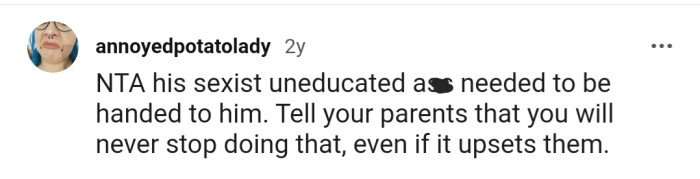 "NTA. His sexist, uneducated a** needed to be handed to him."
