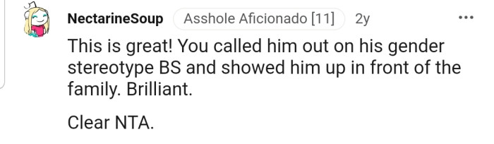 "This is great! You called him out on his gender stereotype BS"