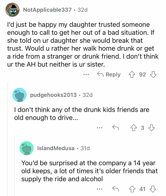 Reddit/Her sister admitted that OP's daughter had been drunk, the reason why she was puking.