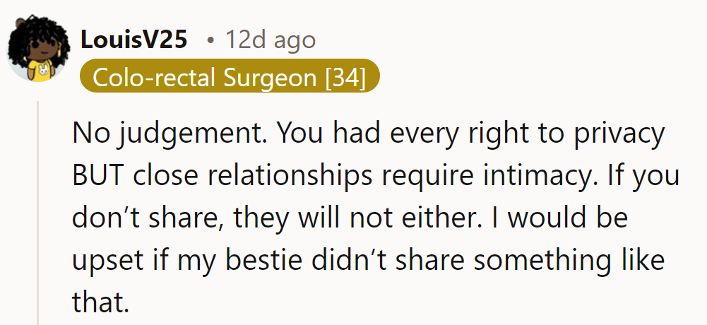 "I would be upset if my bestie didn't share something like that."