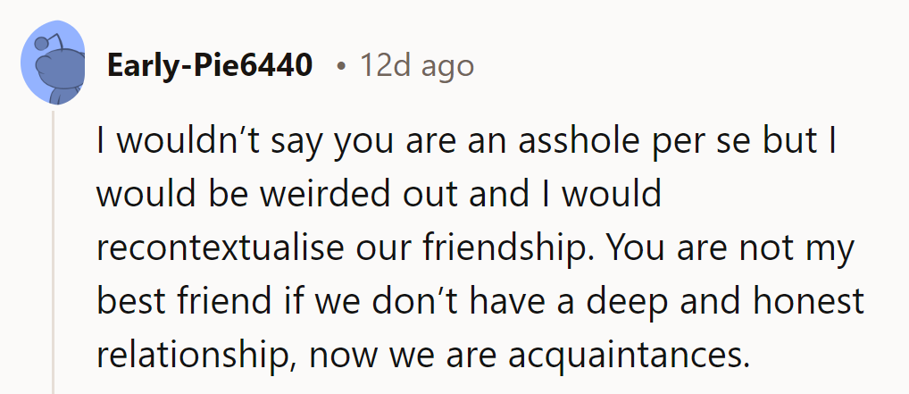 "I would be weirded out and I would recontextualize our friendship."