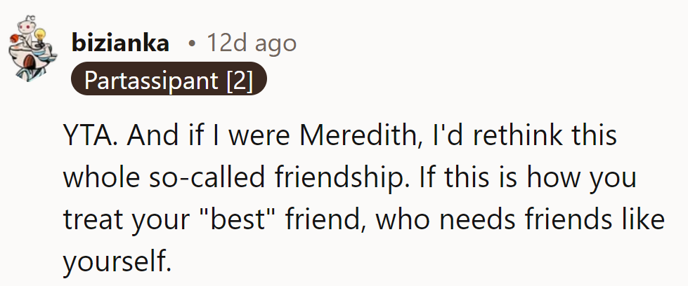 "If this is how you treat your 'best' friend, who needs friends like you?"