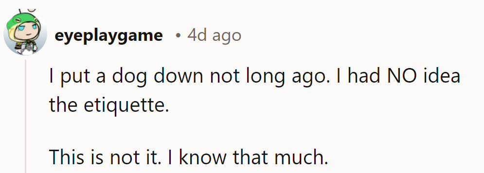 Losing a pet is tough, but finding out through a secondhand call makes it ruff-er. If you're managing family fur-well plans, remember: communication is key, not a secret mission. Let's aim for pawsitive closure, not covert operations.