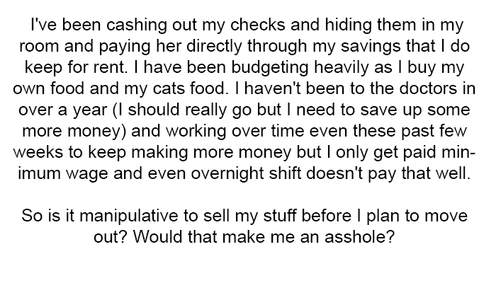 AITA For Secretly Selling My Belongings To Prepare For A Sudden Move