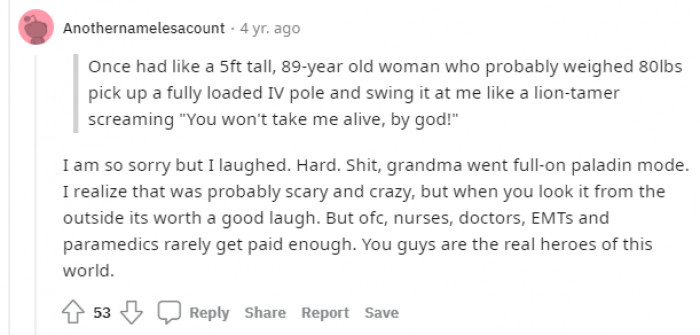 Special shoutout to all the EMTs, paramedics, and cops who show restraint even when the situation gets crazy.