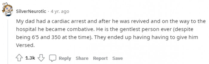 u/sun_stewardTwo EMTs arrived at the Redditor's house after his wife called for help, but the problem was that he was postictal. Seeing his aggressive behavior, they had no other option than to radio for police backup.