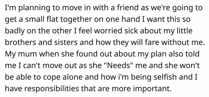 Reddit Reassures A 20-Year-Old She's Not Selfish For Moving Out After Taking Care Of Her 4 Younger Siblings For Years In Place Of Their Neglectful Mum
