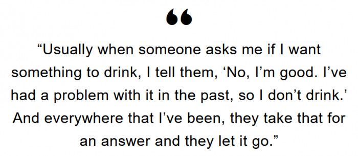 "I shouldn't have to give an explanation about why I'm not drinking."