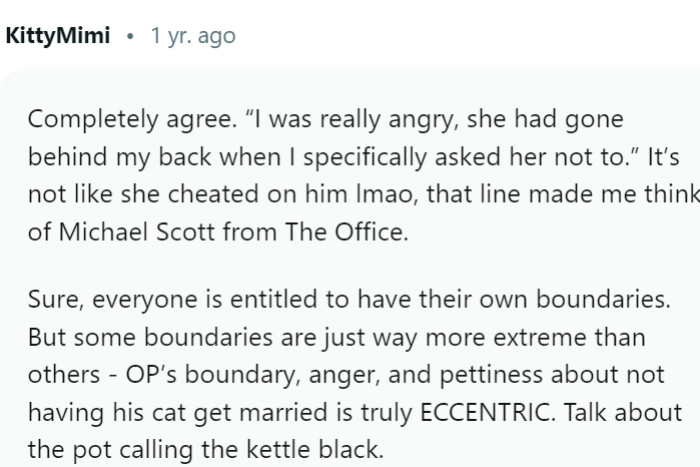 Despite expressing his disapproval of this idea, he arrived home one evening to find his girlfriend conducting a makeshift marriage ceremony for their cats, complete with costumes. Feeling betrayed by her disregard for his wishes, OP decided to retaliate in an equally eccentric manner.