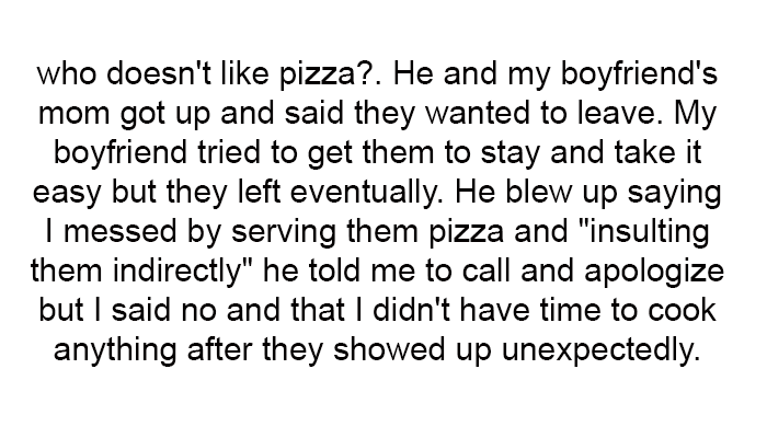 AITA For Serving My Boyfriend's Italian Parents Pizza For Dinner