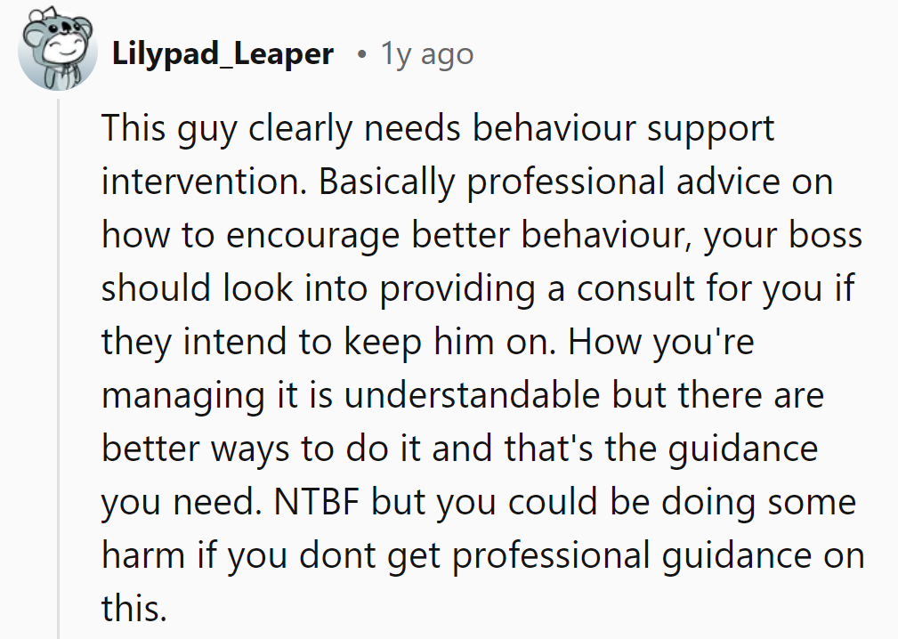 This situation raises tough questions about the balance between maintaining discipline and showing empathy, especially towards someone with a disability. The manager's approach, driven by desperation and lack of support, highlights the complexities of workplace dynamics where there is a need for more training and resources to deal with such scenarios effectively.