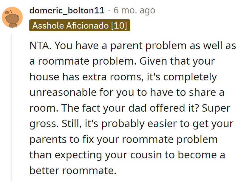 In the end, it seems that sharing a room can be more challenging than splitting a pizza – everyone wants a slice of space, but no one wants to clean up the crumbs. OP's tale is a classic slice-of-life drama, where the toppings are tolerance and the crust is courtesy.