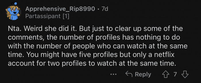 "The number of profiles has nothing to do with the number of people who can watch simultaneously."