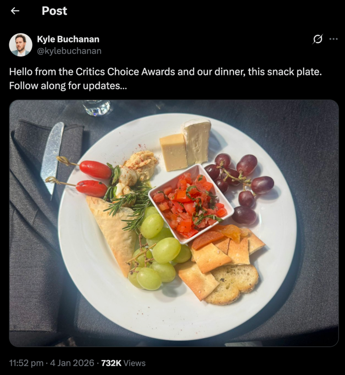 The image prompted a wave of astonishment and disbelief from social media users, many of whom were quick to express their shock. Comments ranged from disbelief to humor, with one individual exclaiming, “This is what they’re feeding you?!” while another added, “Bro what the f**kkkk.” A third user humorously compared the meal to something one might receive on a commercial flight, stating, “This looks like a meal on a United flight, not at an award show.” This backlash is not entirely unexpected, given the Critics Choice Awards’ somewhat checkered history with food.