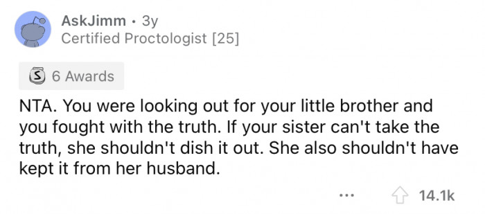 What's your take on this situation? Do you think the OP was out of line, or were they just sticking up for their brother?