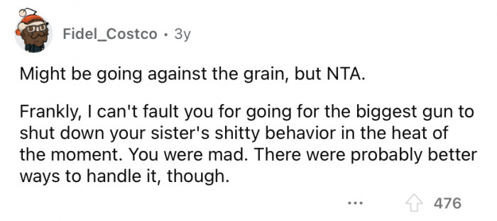 The Redditor immediately told their sister to grow up and stop embarrassing herself.