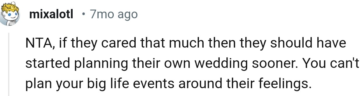 Redditors were in full agreement with OP: NTA. They advised OP to offer them the chance to choose a date first but made it clear that if they don’t pick one soon, OP will.