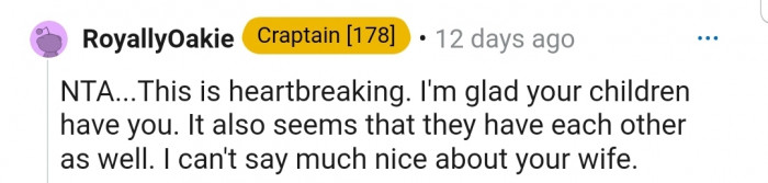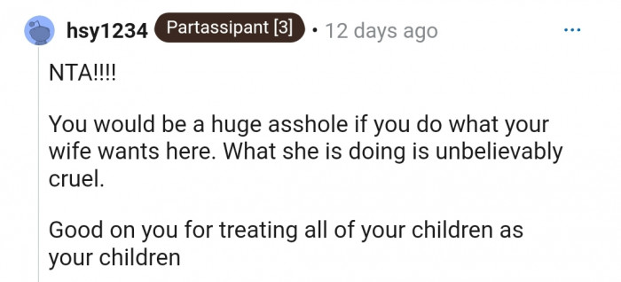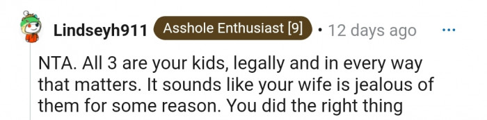 OP received many replies affirming that he is indeed a great father to all his kids. However, his wife was on the receiving end of some angry comments.