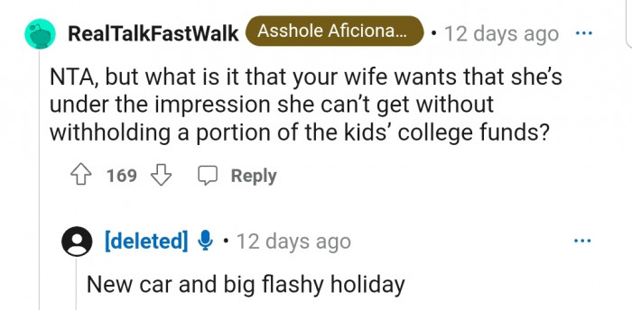"What is it that your wife wants that she’s under the impression she can’t get without withholding a portion of the kids’ college funds?"