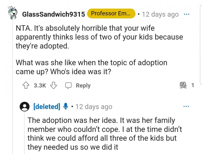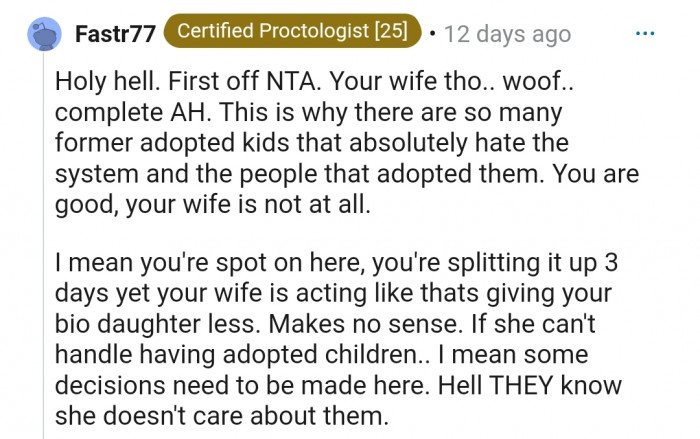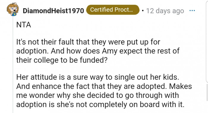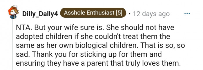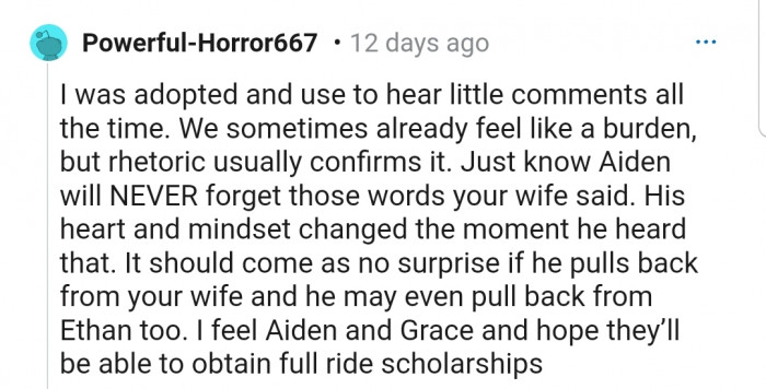 It may also be challenging for the adopting parents to treat the adopted child or children the same way they would a biological child. This is the exact problem a Redditor’s wife faced.
