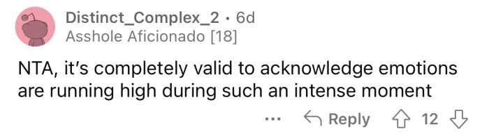 Additionally, it may be beneficial for the Redditor to engage in self-care practices that foster emotional well-being. Simple activities like journaling, meditation, or physical exercise can significantly enhance one's emotional resilience.