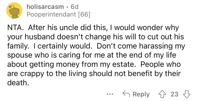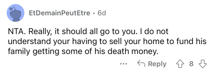 Reddit/Puzzled-Show9348The Redditor's husband is leaving a large portion of his estate to family members.
