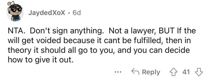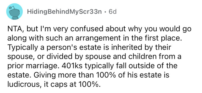 The OP asked if he's an a**hole for refusing to sign a contract regarding his dying husband's inheritance.
