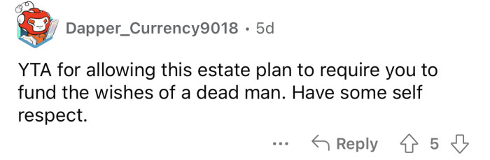 That didn't sit well with the OP, and he was understandably offended that he would be asked to sign a document like that. He said it was "disrespectful and insulting" to insinuate that he wouldn't fulfill his husband's last wishes.