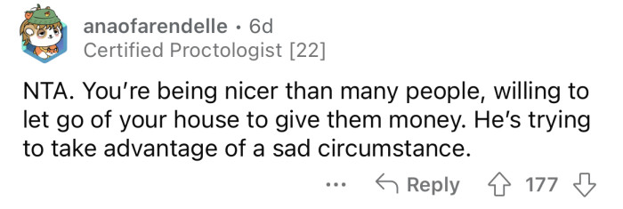 When faced with the potential loss of both a loved one and their home, it’s not uncommon for individuals to react protectively, as seen in this Redditor's situation.