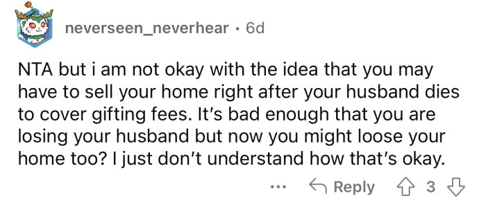 "It's not enough that you are losing your husband, but now you might lose your home too?"
