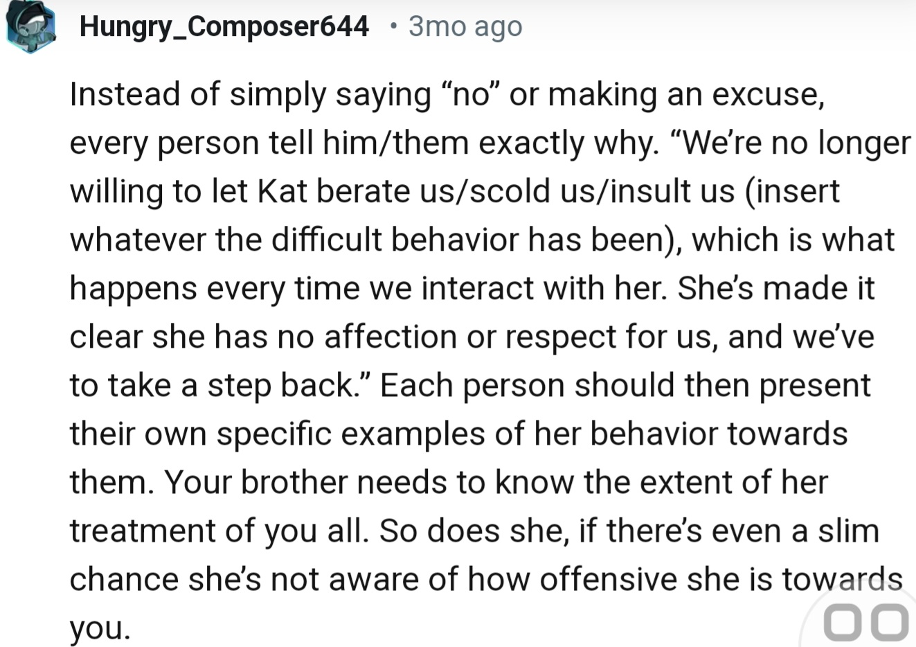From her condescending remarks about your meticulously prepared lasagna to her general aura of unpleasantness, it wasn’t long before the entire family started avoiding her like the plague—and OP’s brother, too, by default.
