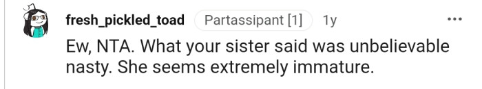 "What your sister said was unbelievable nasty. She seems extremely immature."