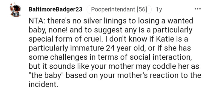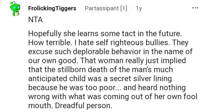 This is why when one Redditor’s sister commented on their brother’s stillborn, they sent her out of their house.