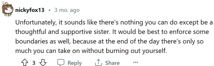 Now the OP is wondering if she should just leave her sister to deal with her problems in her own way. Keep scrolling to see how people reacted.
