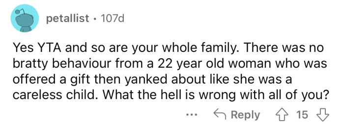 What's your take on this situation? Do you think the OP's sister is being a brat here, or is it understandable that she would be upset by her family's controlling behavior?