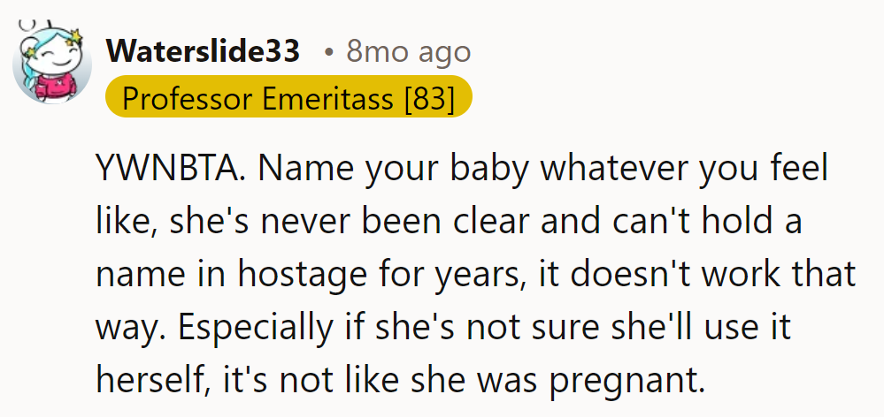 OP was unaware that her sister claimed a name or even wanted kids, as she was uncertain about having children less than a year ago.